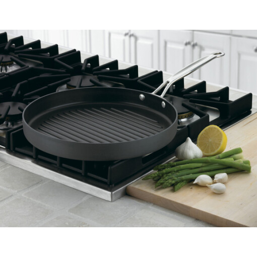 Our Chef’s Classic™ Nonstick Hard Anodized 12″ Round Grill Pan is the perfect piece of cookware to grill steaks, cutlets and burgers indoors. Raised ridges allow fat to drain away from food for healthier results.