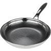 A Cuisinart Multiclad Pro skillet features an aluminum core bonded to a brushed stainless steel exterior and mirror finish stainless steel interior, creating beautiful tri-ply cookware that is also durable. The polished cooking surface does not discolor, react with food or alter flavors. The frying pan also features cool grip handles secured with stainless steel rivets and self-basting, tight fitting lids. Use this skillet to saute vegetables, fry blintzes and more. Oven safe up to 550° F. Dishwasher safe. Limited lifetime warranty