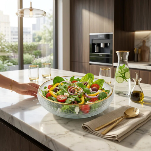 Elevate your everyday with the exquisite simplicity of our translucent glass bowl, delicately rimmed with a touch of radiant gold. Its minimalist design and subtle brushed finish add an understated elegance to any setting, perfect for showcasing your culinary creations or serving as a sophisticated decorative accent. Experience the blend of delicate artistry and functional beauty – a true statement piece for the discerning home.