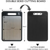 | CUTTING BOARD | Food Safe Plastic (BPA Free) for everyday use. Juice grooves to catch water and drippings. Rubber edges around the double-sided tray stop it from sliding on your counter |
