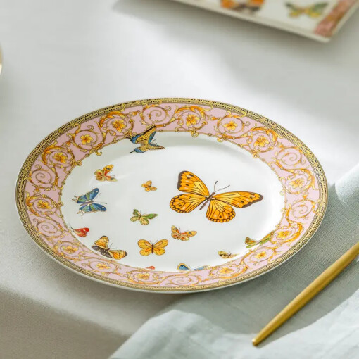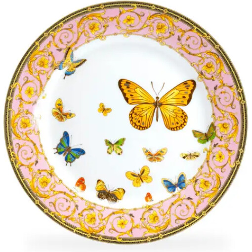 This beautiful pink butterflies accent plate adds a touch of classiness and decor to a simple dinnerware set.