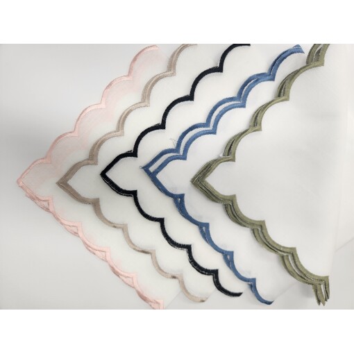 Featuring a subtle stitched border on a crisp white background, this beautiful set of scallop Table Napkins is stylish and versatile at the same time. The napkins can be dressed up for special events or pared down for everyday meals. they are soft to the touch, yet long-lasting, ideal for everyday use.