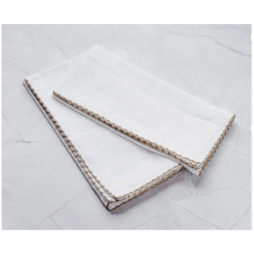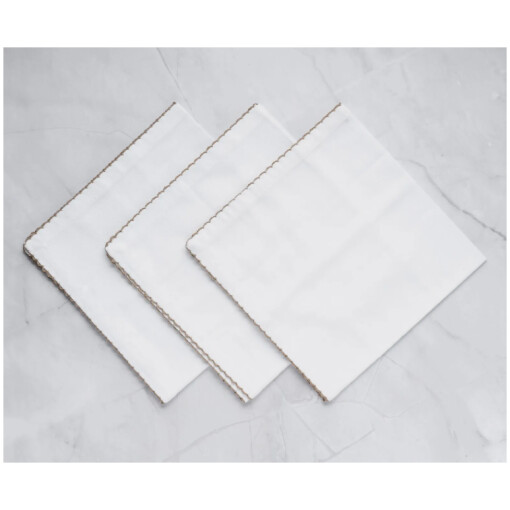 Featuring a subtle stitched border on a crisp white cotton background, this beautiful set of Whip Stitched Table Napkins is stylish and versatile at the same time. The cotton napkins can be dressed up for special events or pared down for everyday meals. they are soft to the touch, yet long-lasting, ideal for everyday use.