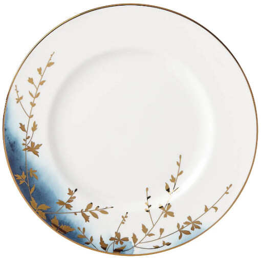 The nature-inspired pattern in serene blue on the Highgrove Park 9″ Salad Plate makes it a welcome addition to casual or formal table settings. Shimmering microwave-safe gold accents provide dimension. Colorful salads look sophisticated on this microwave and dishwasher-safe plate, made from durable bone china.