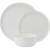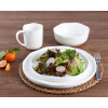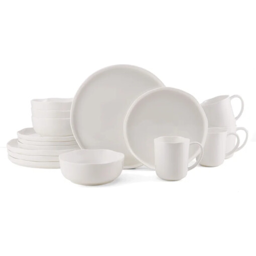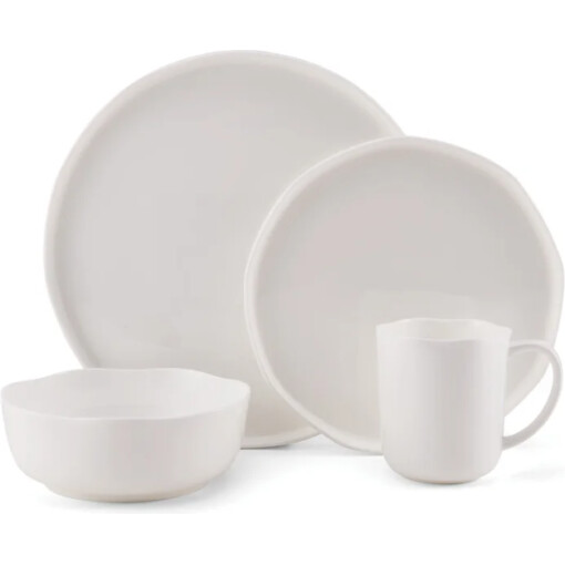 Basic white dinnerware gets a distinctly modern twist with this 16 Piece Bone China Dinnerware Set, Service for 4. Round pieces are given a contemporary, design element, with uniquely curved rim edges and plates with raised sides. Crafted of crisp white bone china, this collection complements any flatware or stemware and is perfect for casual dining and everyday use.