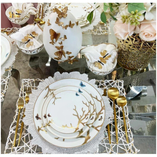 Nothing says summer like this new dinnerware set. It is painted with delicate-colored butterflies, and tree branches, and edged with real 14k gold. Feel alive when presenting your dinner party’s finest on these exciting plates. Delicate, but durable, this is the set of the season.