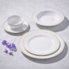 Elevate everyday dining with the Daisy Classic Dinnerware Set. Featuring a refined gold scallop detailing, this set brings timeless charm and effortless elegance to any table setting — perfect for both casual meals and special occasions.