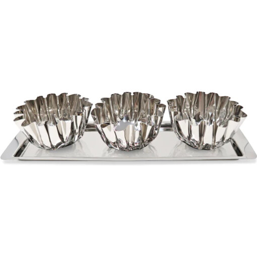 This set of 3 stainless steel bowls is an elegant choice for all your kitchen needs. It is perfect for serving meals or showcasing dips. Its stainless steel construction offers durability and rust-resistance, so you can enjoy its polished shine for years to come. The crushed design adds to its stylish look.