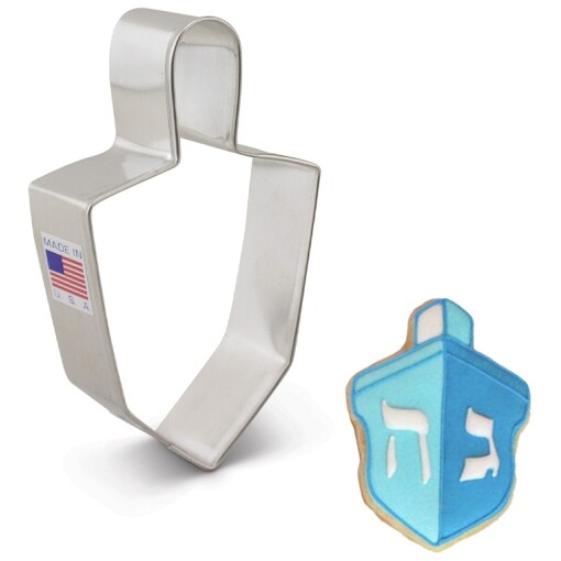 Here’s a shape for the kids – Ann Clark’s 4″ Dreidel Cookie Cutter. Make top cookies for Chanukah with this fun shape. You can also use for Chanukah crafts and decorating.