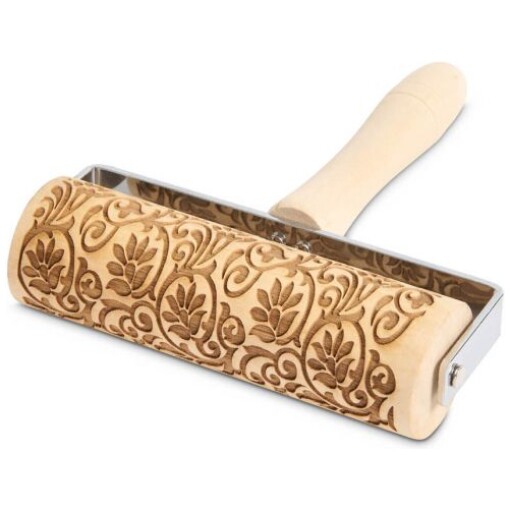 Roll out dough with a traditional rolling pin, lightly dust with flour, and stamp the design with the embossed rolling pin and a firm, even pressure