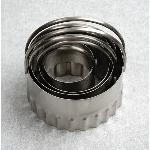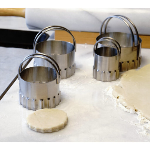 Cut and bake biscuits, and cookies like a pro with this handy set of Round Fluted Cookies Cutters by RSVP. Made of stainless steel the set includes 4 cutters in different sizes. It’s thin blades cut through thin or thick dough, and the cutters nest together for easy storages.