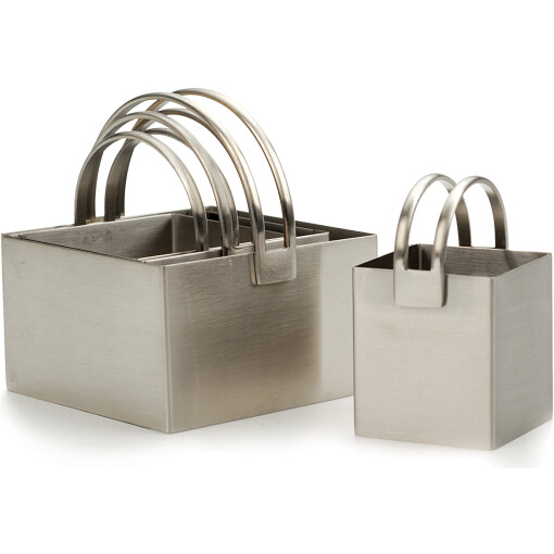 Cut and bake biscuits, and cookies like a pro with this handy set of Square Cookie Cutters by RSVP. Made of stainless steel the set includes 4 cutters in different sizes. It’s thin blades cut through thin or thick dough, and the cutters nest together for easy storages.