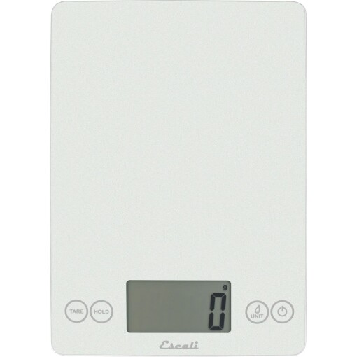 Escali’s Arti scale is capable of weighing liquid and dry ingredients up to an astounding 15-pound with an accuracy of 0.1-ounce, or 1-gram. The Arti’s list of features is long and loaded with value. It’s crisp clear display, which is 50-percent larger than commonly found on a kitchen scale, sits between the user friendly touch sensitive controls and results in a single smooth glass surface. Each scale also includes a tare and hold feature.