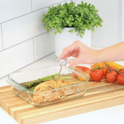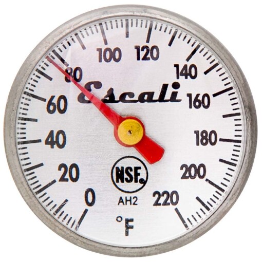 Life in the kitchen is easier when you use the right tool for the task. The Escali AH2 Instant Read Thermometer will help you temperature check food to ensure it is cooked properly for safety and consistency. The magnified lens provides enhanced visibility, and the protective probe sheath is imprinted with target cooking temperatures for beef, poultry, lamb and veal for quick reference. A magnified lens covers the dial display for enhanced visibility and ease of use. The premium stainless steel construction is durable and dishwasher safe.