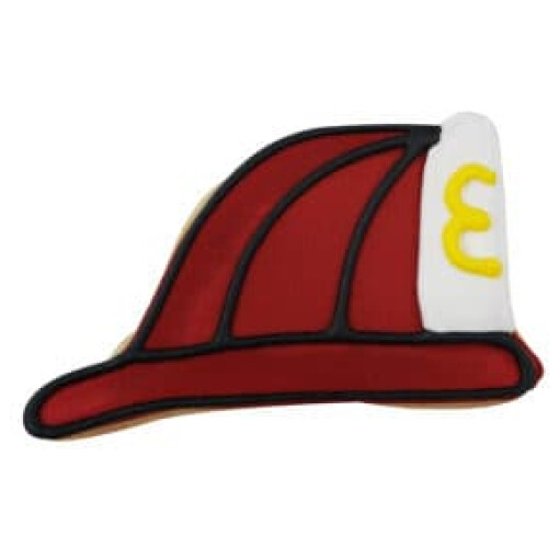 Tinplated Steel or Polyresin Coated Steel Yellow Fire Helmet 3″ Cookie Cutter. Hand wash and dry thoroughly before storing.