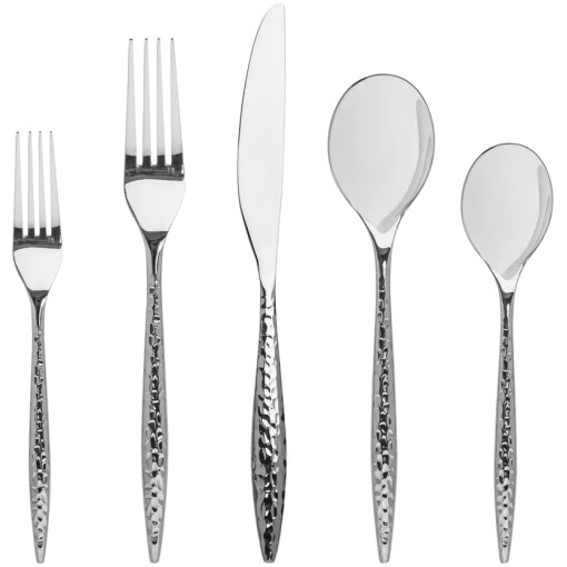 Godinger’s Avellino flatware set has an exquisite texture that complements any table setting. This 20 piece flatware set has a stainless steel core that ensures durability for daily use. This versatile design fits well with any decor.