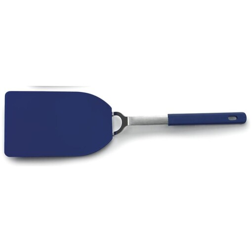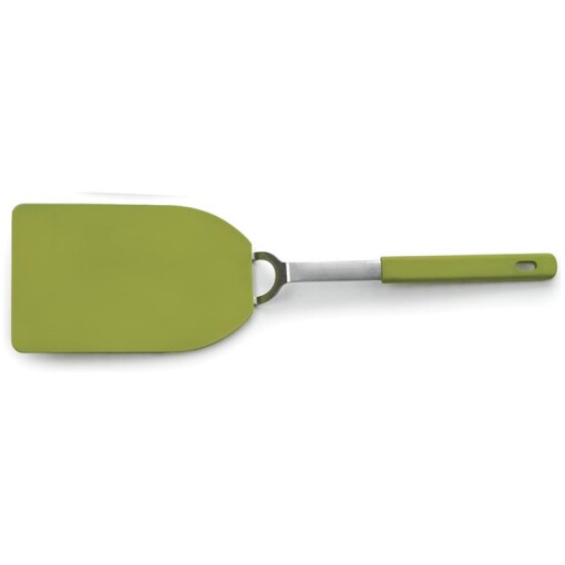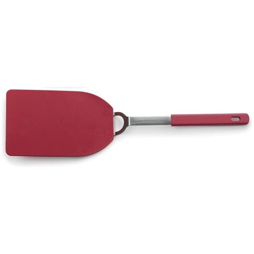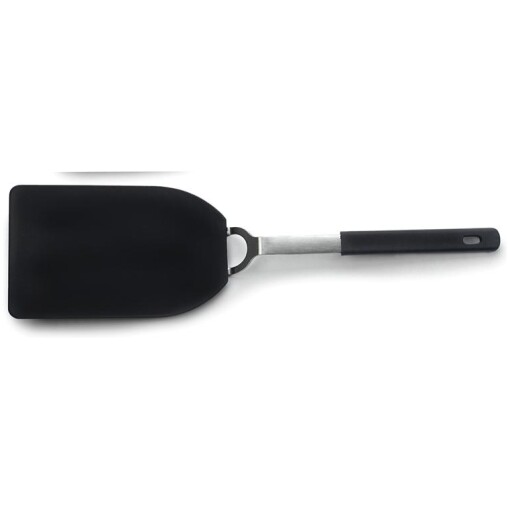 This RSVP flexible nylon turner is ideal for use with nonstick cookware. It features a santroprene comfort grip handle, and the nylon material is heat safe up to 400 degrees. Dishwasher safe.
