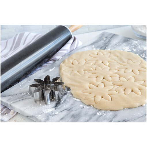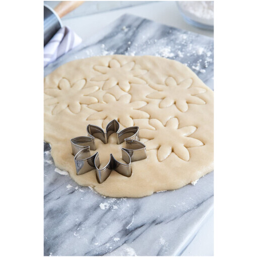 Made of high-quality tinplated steel, these flower shaped cookie cutter cuts quickly and cleanly through dough allowing your delicious cookies to rise high. The cutters are designed to give your pastries some flare. Hand wash and dry thoroughly before storing.