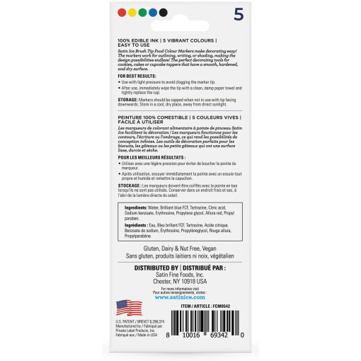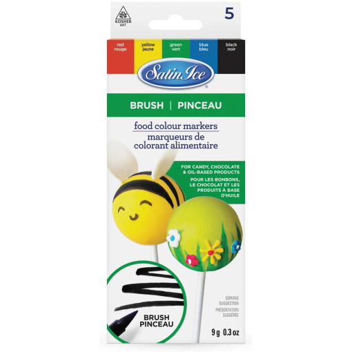 Satin Ice Food Color Markers make decorating easy! Available in a variety of sets, these markers are perfect for use on cookies, cakes, or cupcake toppers that have a hardened surface. The Brush Tip works for all applications and can even be used on candy, chocolate and other oil-based products. 100% Edible Ink with FDA approved color. Markers are saturated with bold color & long-lasting ink. Optimal ink flow creates smooth color application with having to press hard. Tasteless ink will not compromise flavor of finished creation.