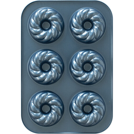 Indulge in the delight of homemade doughnuts with the Nordic Ware French Twist Donut Pan, designed to bake golden, beautifully shaped donuts—no deep frying required! This 6-cavity formed aluminum pan holds a 3-cup total capacity, ensuring evenly baked, fluffy donuts every time. The Twilight Blue exterior brings a touch of elegance to your kitchen, while the smooth silver nonstick interior guarantees easy release and quick cleanup. Oven safe up to 400°F (204°C) and hand wash recommended for lasting performance. Reminiscent of classic French crullers, these baked donuts capture the light, airy texture and signature twist of traditional choux pastry—but without the deep-frying mess. Finish with a dusting of powdered sugar or a sweet glaze for bakery-quality results right at home.