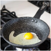 The Zyliss frying pan brings a modern approach to the kitchen with its implementation of Swiss coating technology. The 3-Layer non-stick pan is reinforced with the ultimate ceramic coatings makes this a guaranteed nonstick pan. The small grooves in the surface of the pan collect oils and fats reducing the need to constantly lubricate surface. This multi-purpose pan can withstand temperatures up to 356°F, making it usable on both stovetops and ovens.