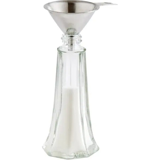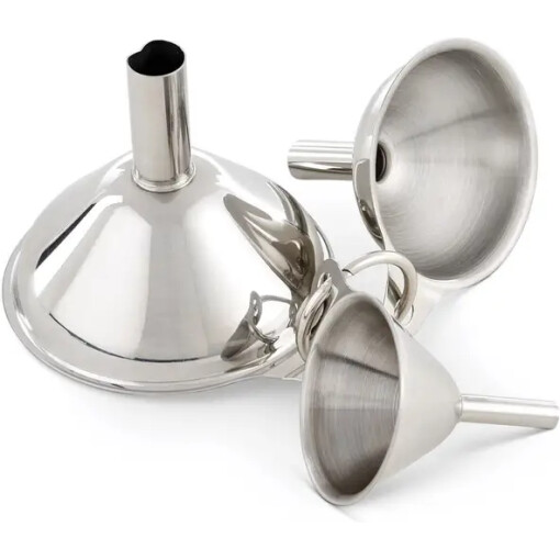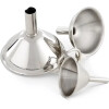 HIC Kitchen’s Condiment Funnel Set makes filling containers with liquid and dry ingredients easier with less mess. Easily fill and refill bottles with narrow openings, like cruets, cooking oil bottles, syrup dispensers, salt and pepper shakers, cleaning supplies, soap dispensers, spray bottles, and more. These versatile household supplies are made from stainless steel to be sturdy and durable. The funnels nest for compact storage and a chain keeps them together and hangs for convenience.