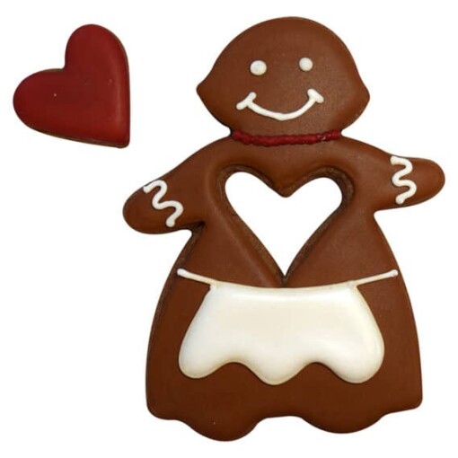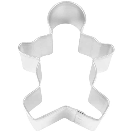 Tinplated Steel Gingerbread Cookie Cutter. Hand wash and dry thoroughly before storing.