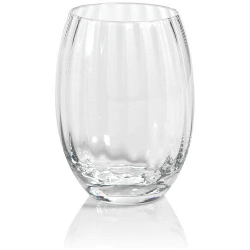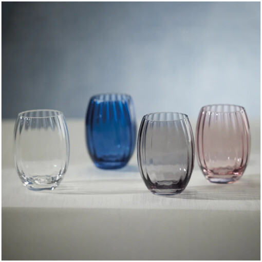 This elegant optic glass tumbler is available in a delightful array of colors, showcasing exceptional durability and timeless sophistication. Its sleek design is accentuated by beautiful lines, making it a truly captivating addition to any table setting.