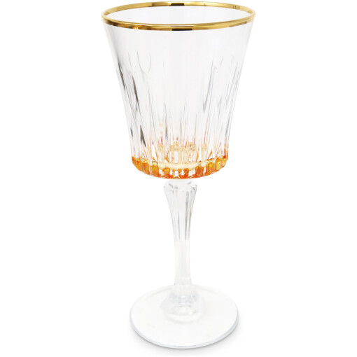 This linear stemware with an exquisite gold rim effortlessly adds a touch of sophistication and elegance to any table setting.