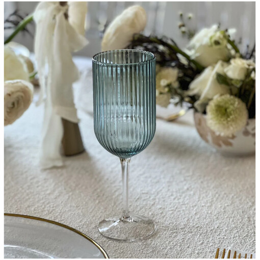 Glass Stemware Blue Ribbed Set Of 6