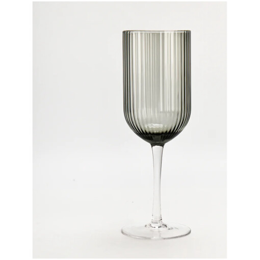 Glass Stemware Grey Ribbed Set Of 6