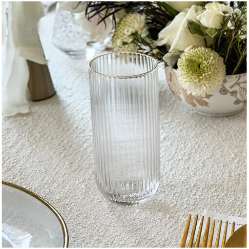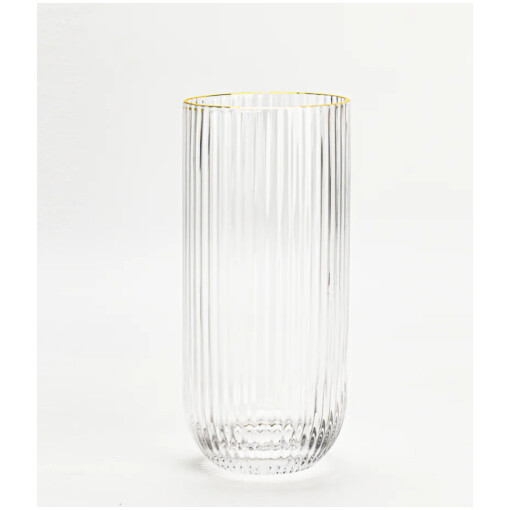 Glass Tumbler Gold Rim Ribbed Glass Set Of 6