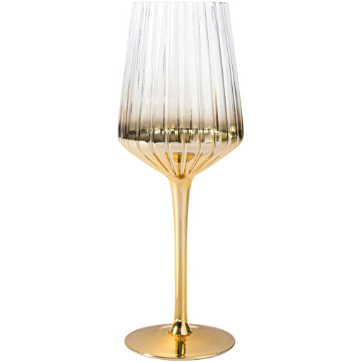 This exquisite wine glass is a true work of art, featuring a mesmerizing ombre effect that seamlessly transitions from a deep, rich hue to a lighter shade. The addition of gold detailing exudes opulence and sophistication, making it a stunning choice for elevating the ambiance of any special occasion.