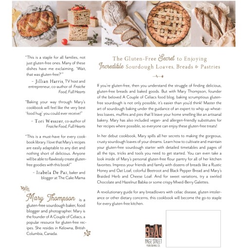 If you’re gluten-free, then you understand the struggle of finding delicious, gluten-free breads and baked goods. But with Mary Thompson, founder of the beloved A Couple of Celiacs food blog, baking scrumptious glutenfree sourdough is not only possible, it’s easier than you’d think! Master the art of sourdough baking under the guidance of an expert to whip up wheatless loaves, muffins and pies that’ll leave your home smelling like an artisanal bakery. Mary has also included vegan- and allergen-friendly substitutes for her recipes where possible, so everyone can enjoy these gluten-free treats!In her debut cookbook, Mary spills all her secrets to making the gorgeous, crusty sourdough loaves of your dreams. Learn how to cultivate and maintain your gluten-free sourdough starter with detailed timetables and pages of all the tips, tricks and tools you need to get started. A revolutionary guide for any breadlovers with celiac disease, gluten intolerance or other dietary concerns, this cookbook will become the go-to staple for every gluten-free kitchen.