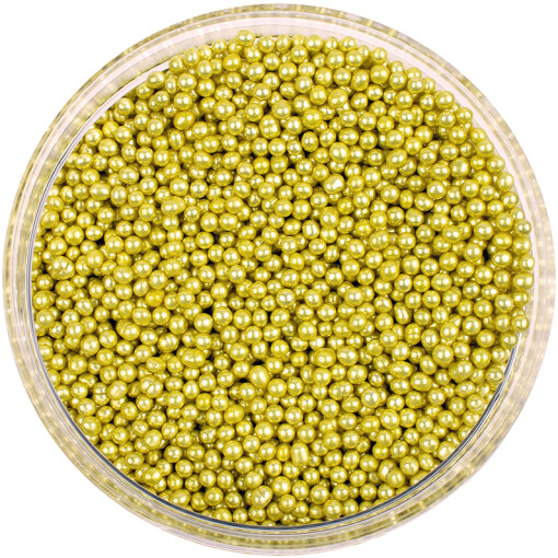 Sugar pearls to add a decorative touch to cake and other desserts. Non-toxic but not edible–for cake decoration only. Peanut free. Kosher Parve. Kosher Certified by Beth Din Minchas Chinuch Tartikov 8 oz. container