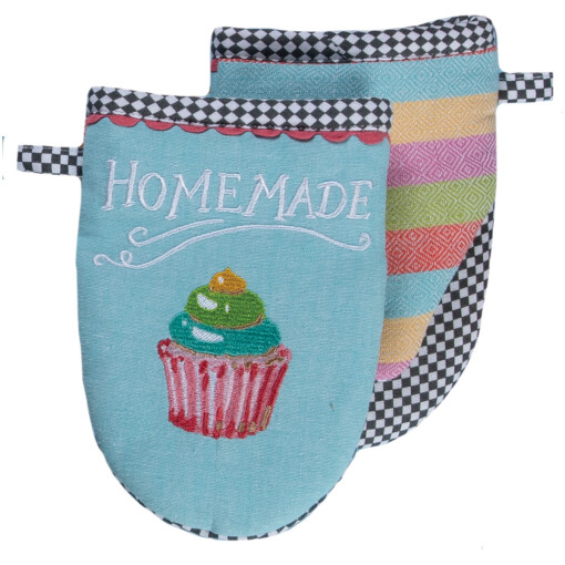 It’s a baker’s sweet dream with this confectionary textile assortment, sure to add a huge helping of personality to kitchen decor! Grabber mitt features embroidery and is easy to slip on and off while protecting your hands from hot pots and pans to 200 degrees Fahrenheit. Snug fit for a firm grip and compact so easy to store.