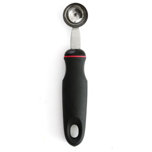 Use this Grip-Ez Melon Baller from Norpro to make neat, round melon balls. Great for honey dew, cantaloupe, and watermelon! Easily scoop melon into bite-size morsels for fruit salads, garnish, drinks and desserts. Soft, non-slip, Grip-Ez handle. The handle has a patented shape, ergonomically designed to fit perfectly for right or left hand use. Oversize handle and finger indents give a great hold without strain and keeps hands clear of the tool’s functional surface. Stainless steel head with santoprene handle. Handy hang hole for easy storage and it’s dishwasher safe.