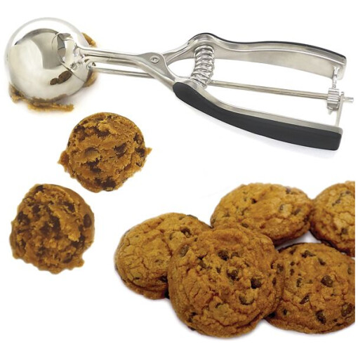 Spring action, this stainless steel Grip EZ Scoop, by Norpro, is designed with Santoprene, soft grip handles. Ideal for scooping ice cream, scoop and drop cookie dough or cake pops, use as a meatballer, fruit and melon baller.