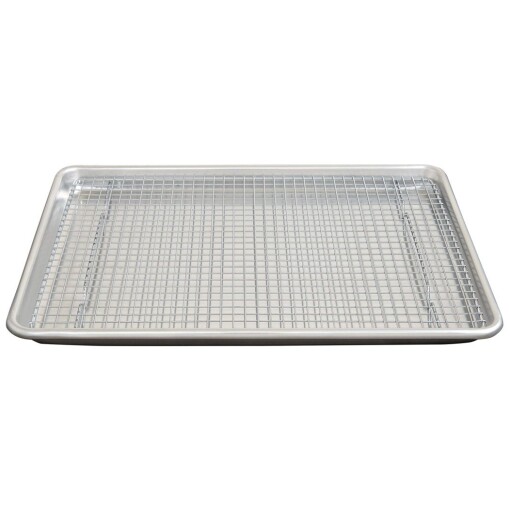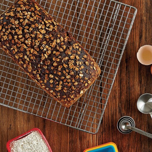 Mrs. Anderson’s Half Sheet Cooling Rack lifts baked goods and bakeware above countertops for better airflow and faster cooling times. It won’t scratch surfaces, and resists rust. The cross-wire weave holds smaller items securely so they won’t crumble or fall through the grate.