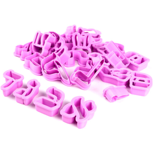The Aleph Bet Siddur Font Cookie Cutter Set is made to last. Each letter is about 1″, the taller letters are about 1.6″. Set of 27 separate letter cutters can be used as fondant stamps and embossers too. Each cutter/stamp is beveled at the top for a sharp cut. Made of food safe plastic. Cutters should be hand washed in warm water as excessive dishwasher heat may deform the cutters.