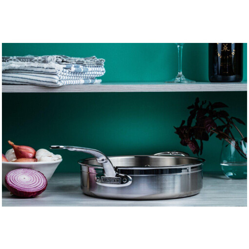 For superior form and function from optimized cold forged construction, equip the kitchen with Hestan ProBond Forged Stainless Steel Sauté Pan. With its wide surface area and vertical sidewalls, this versatile sauté pan is ideal for searing, browning, simmering/braising and one-pot meals.