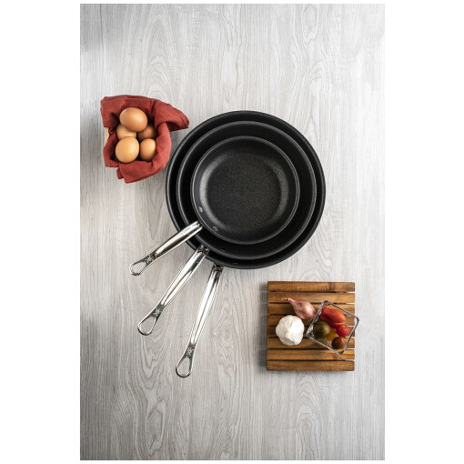 For superior form and function from optimized cold forged construction, equip the kitchen with Hestan ProBond Forged Stainless Steel Skillets with TITUMTM Nonstick. Available in 3 sizes, these frying pans are quick heating, ideally weighted and have 20% more surface area than traditional frypans.