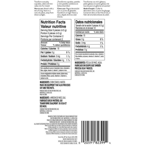 Top your cupcakes, cookies, cakes and more with Wilton White Rose Wafer Decorations. Great for birthdays, weddings, showers and more, these edible flower decorations are a sweet way to top your treats. Each pack contains 10 cute white rose wafer decorations, perfect for a batch of cupcakes to pressing into the sides of a cake. Use them to top summer cupcakes or decorate a wedding shower cake with a bunch of these lightweight edible roses. A fun and edible cake decoration that’s perfect for any occasion, these wafer icing decorations are a quick and easy way to add a finishing touch to any treat!