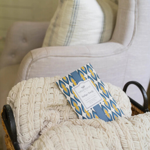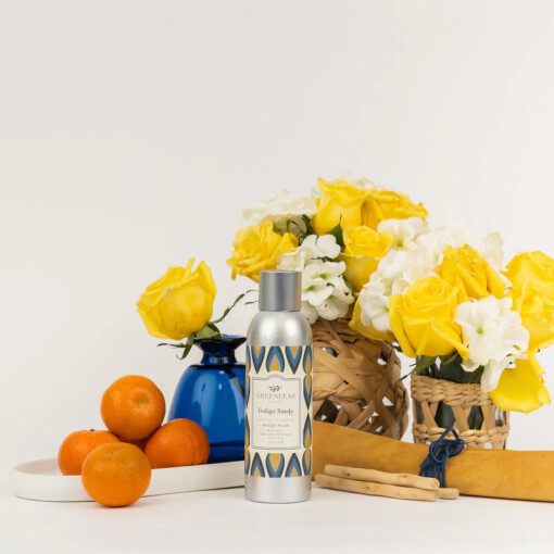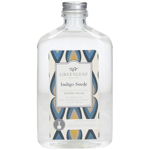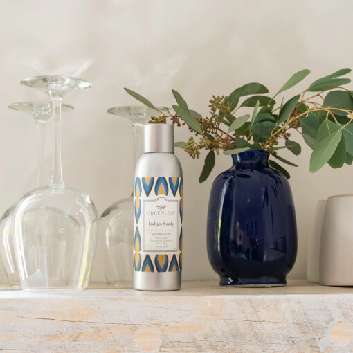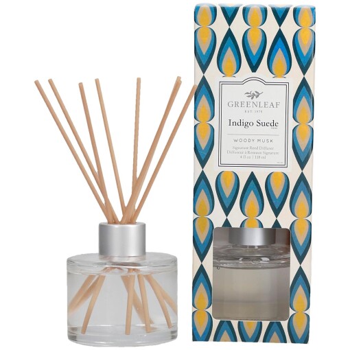 Enjoy an instant burst of your favorite Greenleaf fragrance! Indigo Suede is perfect for fragrancing bathrooms, bedrooms, and every room in between. Mandarin and currant combine with an elegant and sophisticated blend of atlas cedar, rose, sandalwood and leather for a fragrance that’s as warm and smooth as suede.