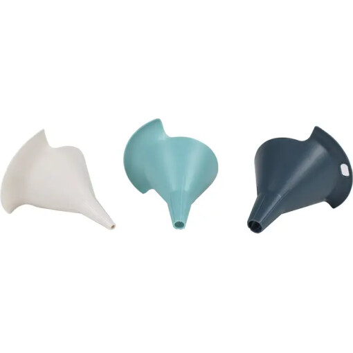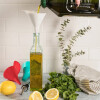 Easily transfer liquids and dry goods with this versatile 3-Pc. Funnel Set. These heat resistant (boilable) food-safe funnels can be used all around the home. The 3 sizes interlock together when not in use to save space and keep organized. Each funnel has a different bottom diameter to suit a variety of transferring needs. Sizes include: 7 oz. funnel with a 0.758 outer bottom stem diameter; 5 oz. funnel with a 0.572″ outer bottom stem diameter; and 4 oz. funnel with a 0.378″ outer bottom stem diameter.
