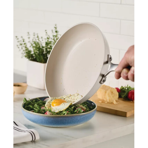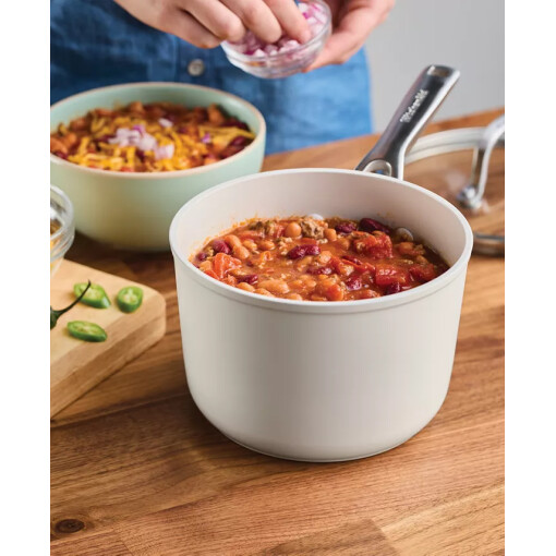 - Set includes: 1.5-qt. saucepan and lid, 3-qt. saucepan and lid, 6-qt. stock pot and lid, 3-qt. sauté pan and lid, 8.25″ frypan, 10″ frypan
