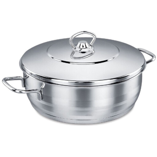 Korkmaz Astra Cookware. The most hygienic and everlasting material for cooking. 18/10 stainless steel. Triplex heavy bounded capsule bottom with an attractive high polish exterior surface. Stainless steel handle.