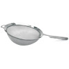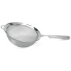 Strain out unwanted liquid and excess moisture with this sturdy strainer. The double mesh makes it ideal for fine straining. It features comfortable large handles with convenient finger grooves. It has a resting ring designed to hook over your bowl. Stainless steel.