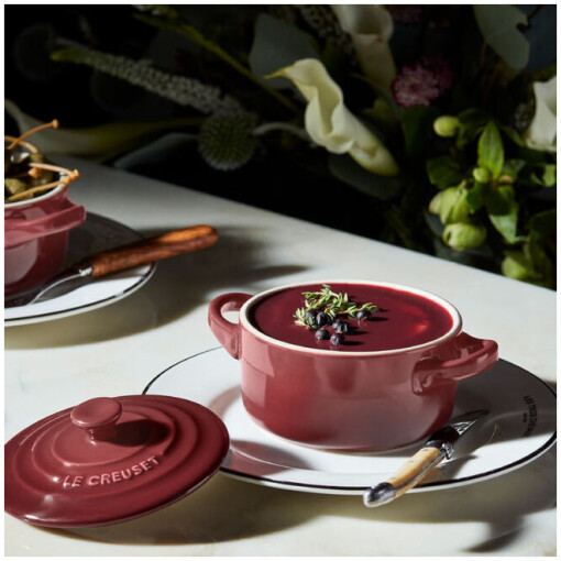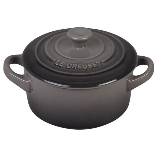 Complete your kitchen cookware set with the Le Creuset Stoneware Mini Round Cocotte. Appetizers, soups, side dishes, and individual desserts are perfect foods for these mini replicas of Le Creuset’s famous round enameled cast iron Dutch ovens. Made of durable stoneware to maintain temperatures and block moisture absorption. It also has a non-stick interior that makes clean-up a breeze and is safe to use in the oven, freezer, or microwave. Perfect for your mini sourdough bread baking too.