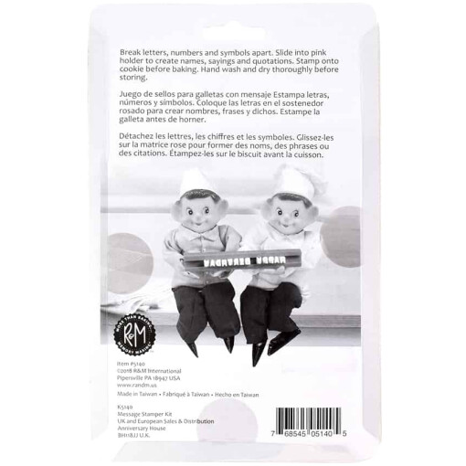 Its never been easier to personalize your sweet creations. Simply choose the letters, numbers and or symbols to make your message, place them in the special holder to create your message and use the holder to press the message into your cookie or treat. Includes a holder with letters (duplicates), numbers and symbols. Hand wash.